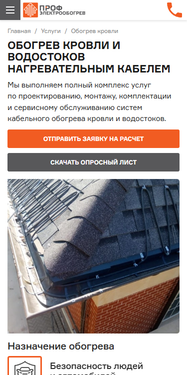 Благодаря комплексному подходу к разработке лендинга и рекламной кампании, компания OOO «Профэлектрообогрев» значительно увеличила количество заявок и звонков, что положительно сказалось на ее бизнесе.
