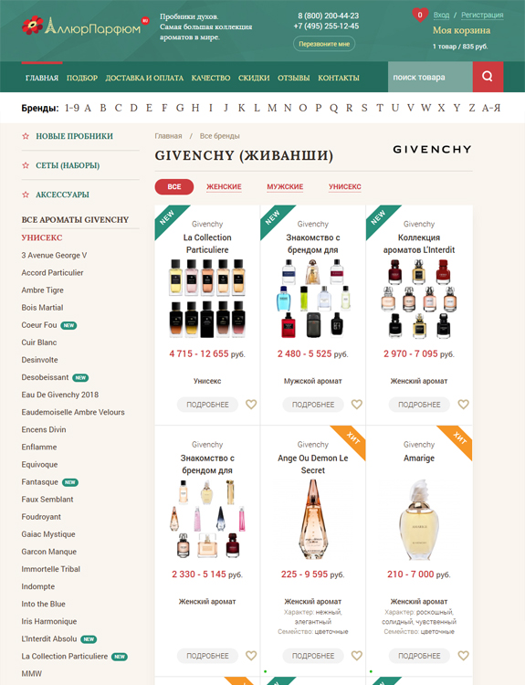 Интернет-магазин «АллюрПарфюм» предлагает пользователям широкий функционал: