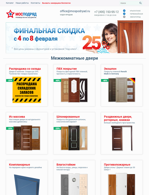 Проект «Мосподряд» стал ярким примером нашего комплексного подхода к разработке сайтов — от глубокого анализа потребностей клиента до внедрения функционала, который действительно работает. Мы уверены, что обновленный интернет-магазин не только привлечет новых клиентов, но и поможет компании укрепить свои позиции на рынке продажи межкомнатных и входных дверей, создавая удобное пространство для взаимодействия с клиентами.