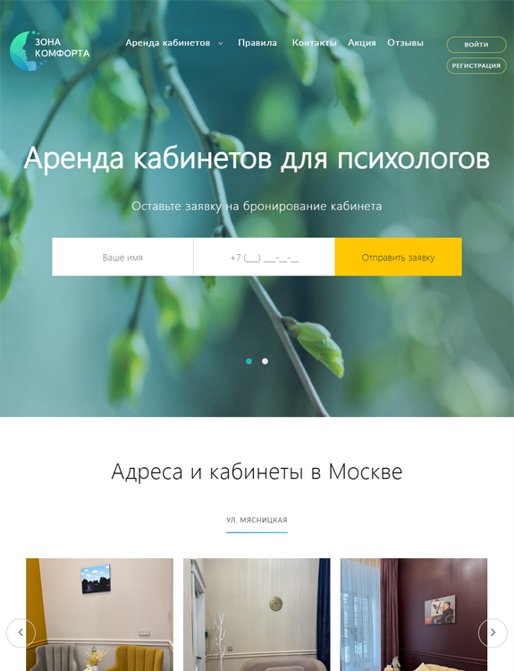 Проект «Зона комфорта» наглядно демонстрирует наш комплексный подход к разработке сайтов — от детального планирования до реализации функционала. Мы уверены, что новый сайт не только привлечет новых клиентов, но и поможет компании укрепить свои позиции на рынке аренды кабинетов для психологов, обеспечивая комфорт и удобство как для арендаторов, так и для пользователей.