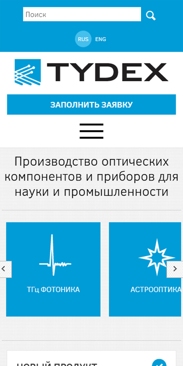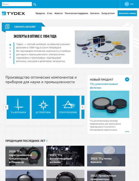 - Продуктовый каталог: Раздел, где представлены новинки и товары последних лет, предназначенные для науки и промышленности.